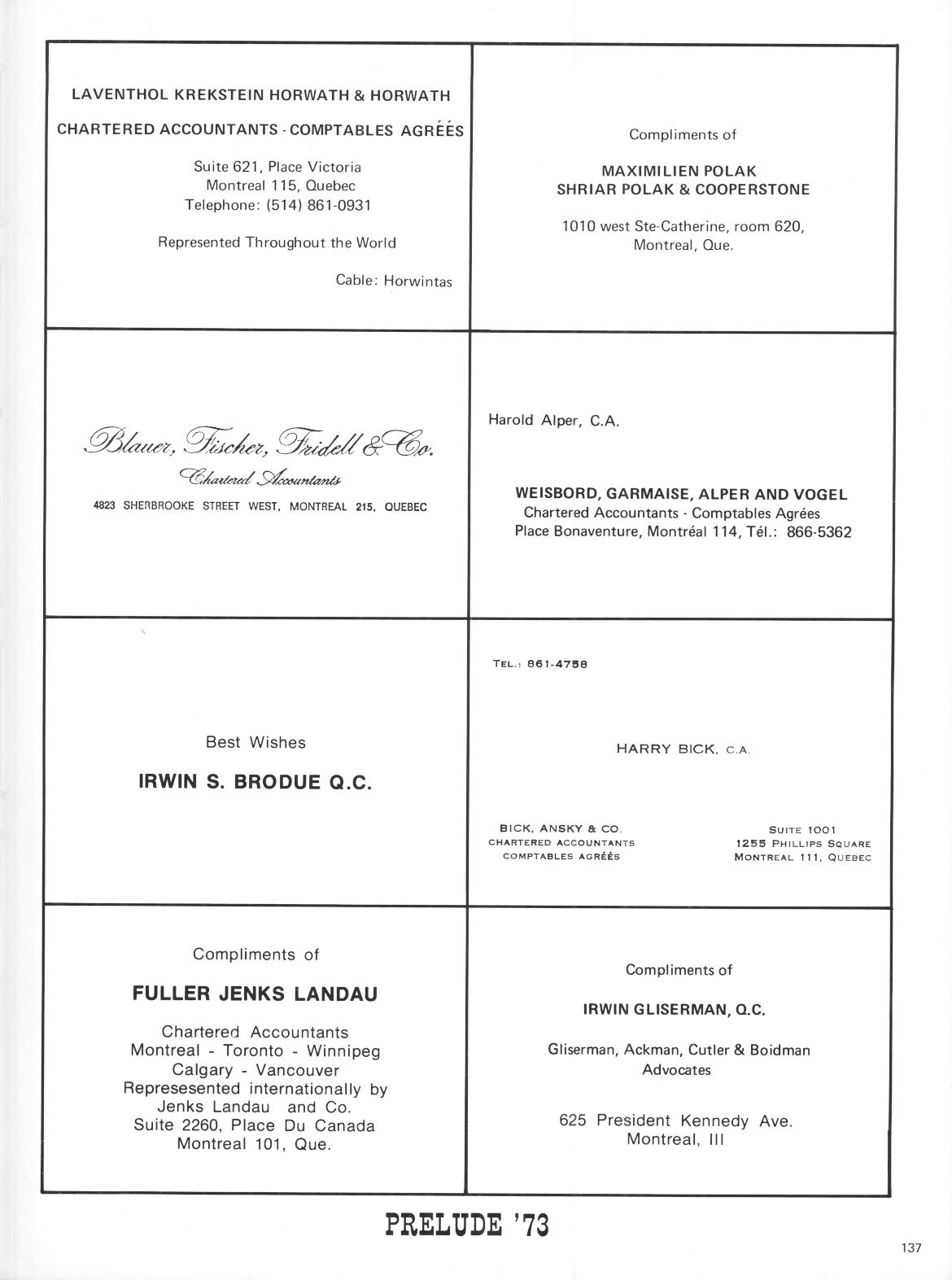 1973 Page 137. Advertising - Irwin Gliserman, QC